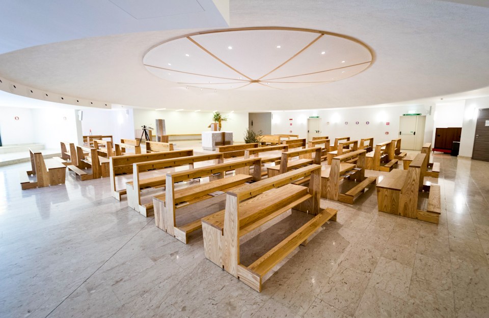 On April 14, 2012 the church of the new San Gerardo hospital in Monza - designed by the architect Edrisio Bruletti - was inaugurated. As soon as the concrete structure was built, strong reverberation and resonance problems appeared deriving from the particular geometry of the room. Therefore, we intervened with an acoustic treatment proposal, flanked by Mauro Lavazza of Leading Technologies - for electric sound system - and the GGP Sound Alberto Ferraris for the installation of the sound absorbing false dome.