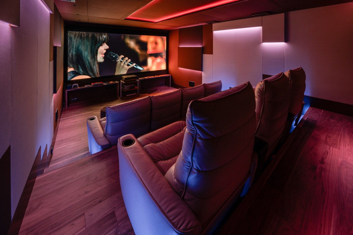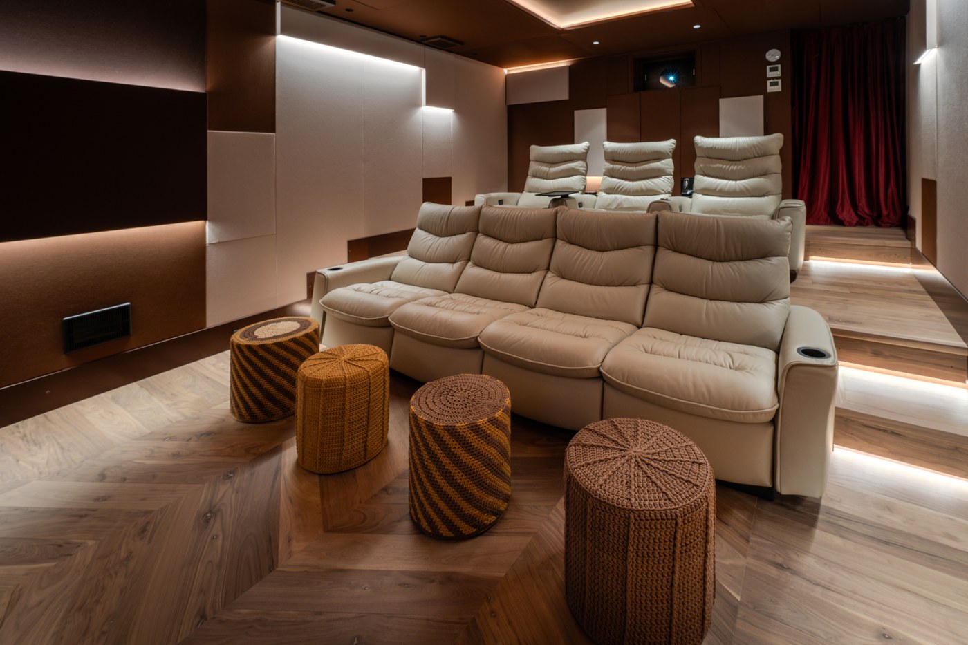 Read moreStudio Sound Service handled the acoustic design and implementation of a sophisticated home cinema within a private residence in Naples. The project stands out for its meticulous attention to the balance between aesthetics and acoustic functionality, creating a space that combines professional audio-video performance with elegant and comfortable design. The room was conceived not only as an environment dedicated to watching movies but as a multipurpose entertainment space for daily use, harmoniously integrating with the residence's style. The project also includes a refined entrance lounge that serves as a transition and relaxation area, characterized by cinematic design elements such as decorative film reels and a color palette coordinated with the main room. The acoustic treatment, while respecting rigorous technical parameters, was completely incorporated into the design elements, with hidden sound-absorbing panels and acoustic diffusers strategically positioned to ensure an immersive sound experience. The lighting system was designed with different configurations to adapt to multiple uses, from cinematic viewing to music listening to everyday use as a relaxation environment. The PMC Ci series audio system offers professional-level performance, while the reclining armchairs arranged on two levels ensure comfort and optimal visibility for all viewers.
