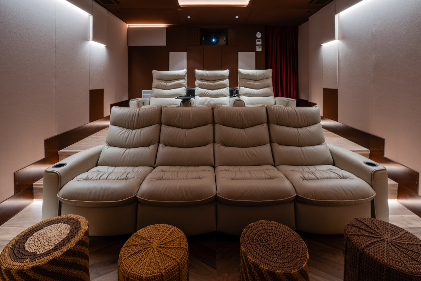 Design and implementation of a high-end home cinema in a private residence in Naples, with special attention to the integration between aesthetic design and acoustic performance, including a coordinated entrance lounge.