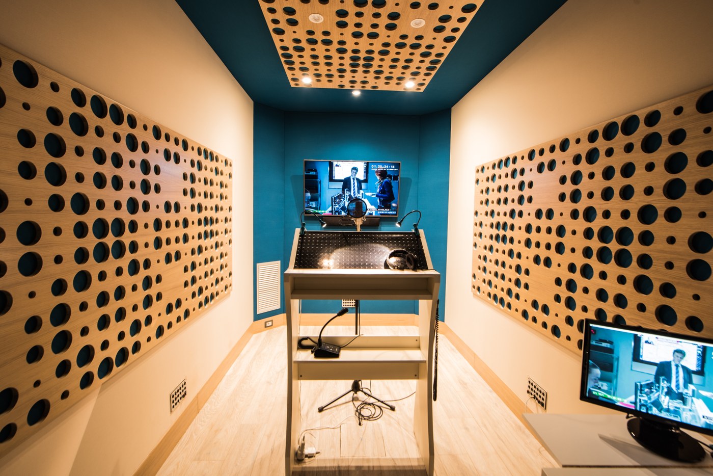 The dubbing room we designed for Milk was nicknamed "Circle Room" and consists of a 5.1 ITU compliant directory and a live room for voice and single musical instruments recording.