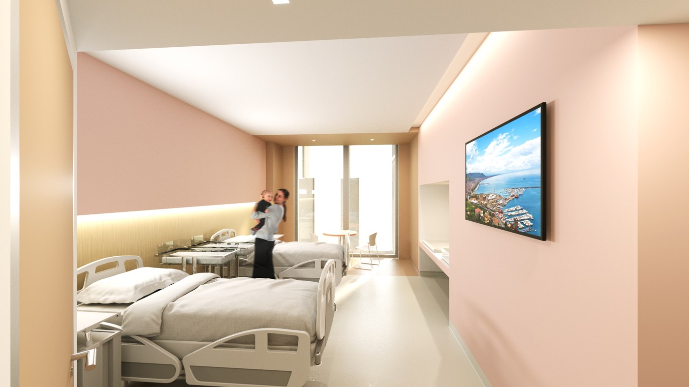 Complete acoustic design for the new hospital complex in Salerno, with interventions on acoustic climate, environmental impact, passive acoustic requirements, CAM, sound insulation, noise mitigation of mechanical systems, and internal acoustics.