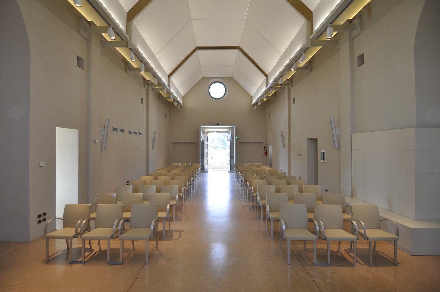 Studio Sound Service designed the acoustic correction of the former church, transformed into an auditorium-conference room, in collaboration with the Guicciardini&Magni Architects.