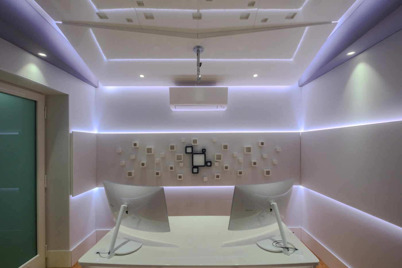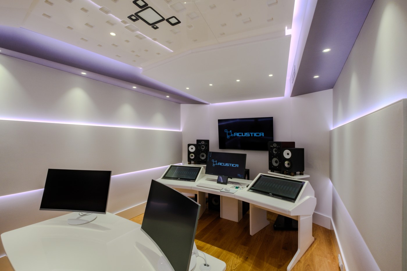 Leggi tuttoStudio Sound Service ha curato la progettazione acustica e architettonica dello studio di Acustica Audio, realizzando un ambiente dalle caratteristiche uniche nel suo genere. Lo spazio, contraddistinto da un design minimalista completamente bianco, si distingue per un innovativo progetto illuminotecnico che garantisce una diffusione omogenea della luce indiretta, senza corpi illuminanti a vista - una soluzione che lo rende perfetto per le riprese video professionali.