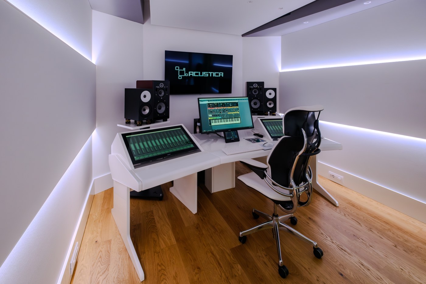 Questo studio non è solo un ambiente tecnicamente impeccabile per la produzione audio, ma è diventato il cuore pulsante delle attività di Acustica Audio: qui vengono effettuati i test dei loro rinomati software, si svolgono le sessioni di lavoro con endorser e beta tester, e vengono realizzati tutti i contenuti promozionali e didattici dell'azienda. La qualità acustica dello spazio è stata inoltre immortalata come parte integrante del software Sienna, che include questo studio tra i suoi ambienti campionati.