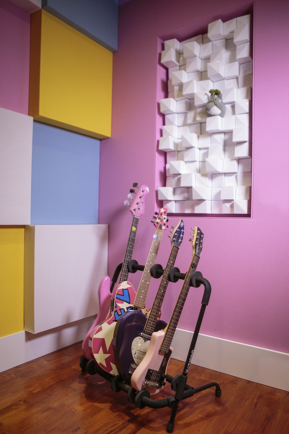 Leggi tutto“Il mio nuovo studio è ispirato dalle relazioni tra suoni e colori. Come i colori influenzano i suoni e viceversa. Non è niente di nuovo in realtà, già Scriabin, Newton, Kandinsky fecero ricerche su questo campo. In questo ambiente posso finalmente creare la musica che sogno” - Giorgia Angiuli