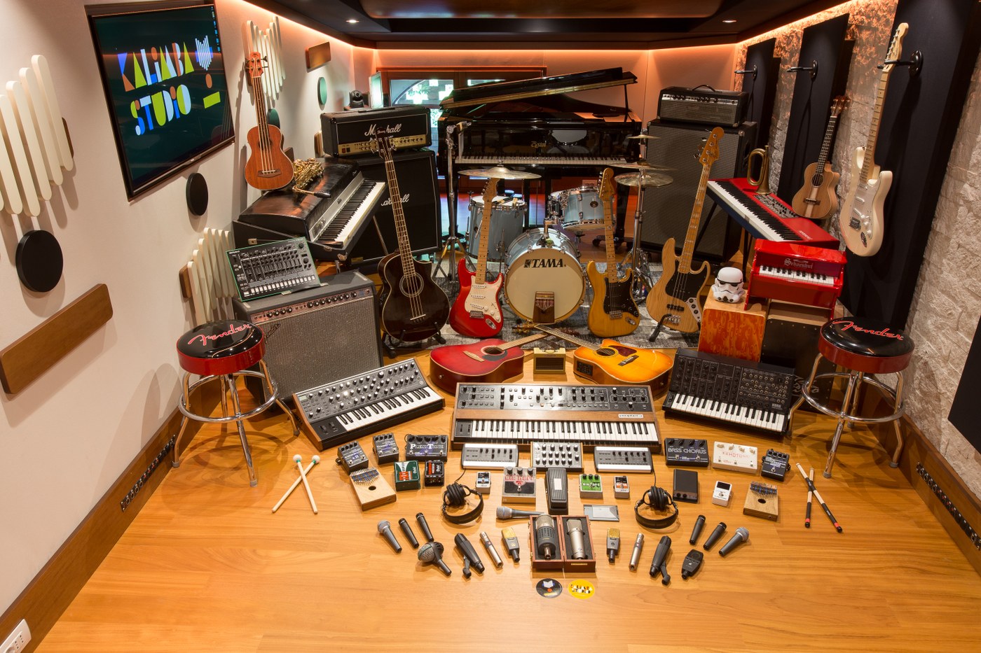 Completamente insonorizzato e caratterizzato da un'acustica naturale ed avvolgente, Kalimba Studio dispone di un'ampia selezione di strumenti vintage e moderni (tra cui un pianoforte a coda Boston) e di microfoni, casse e outboard di altissimo livello, offrendo quindi il meglio di entrambi i mondi: il calore del suono analogico e la pulizia di quello digitale.
