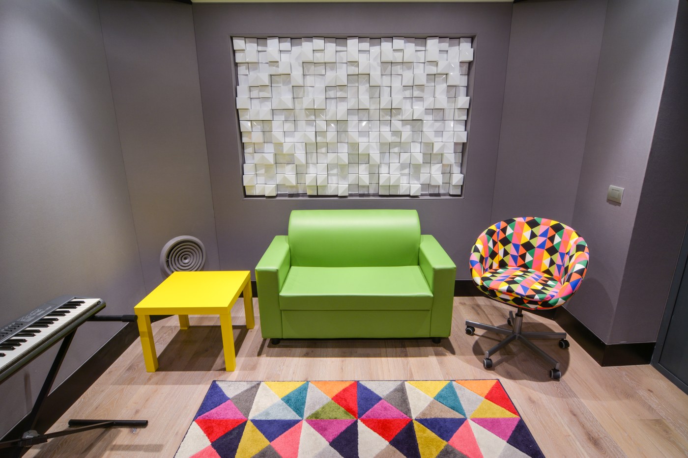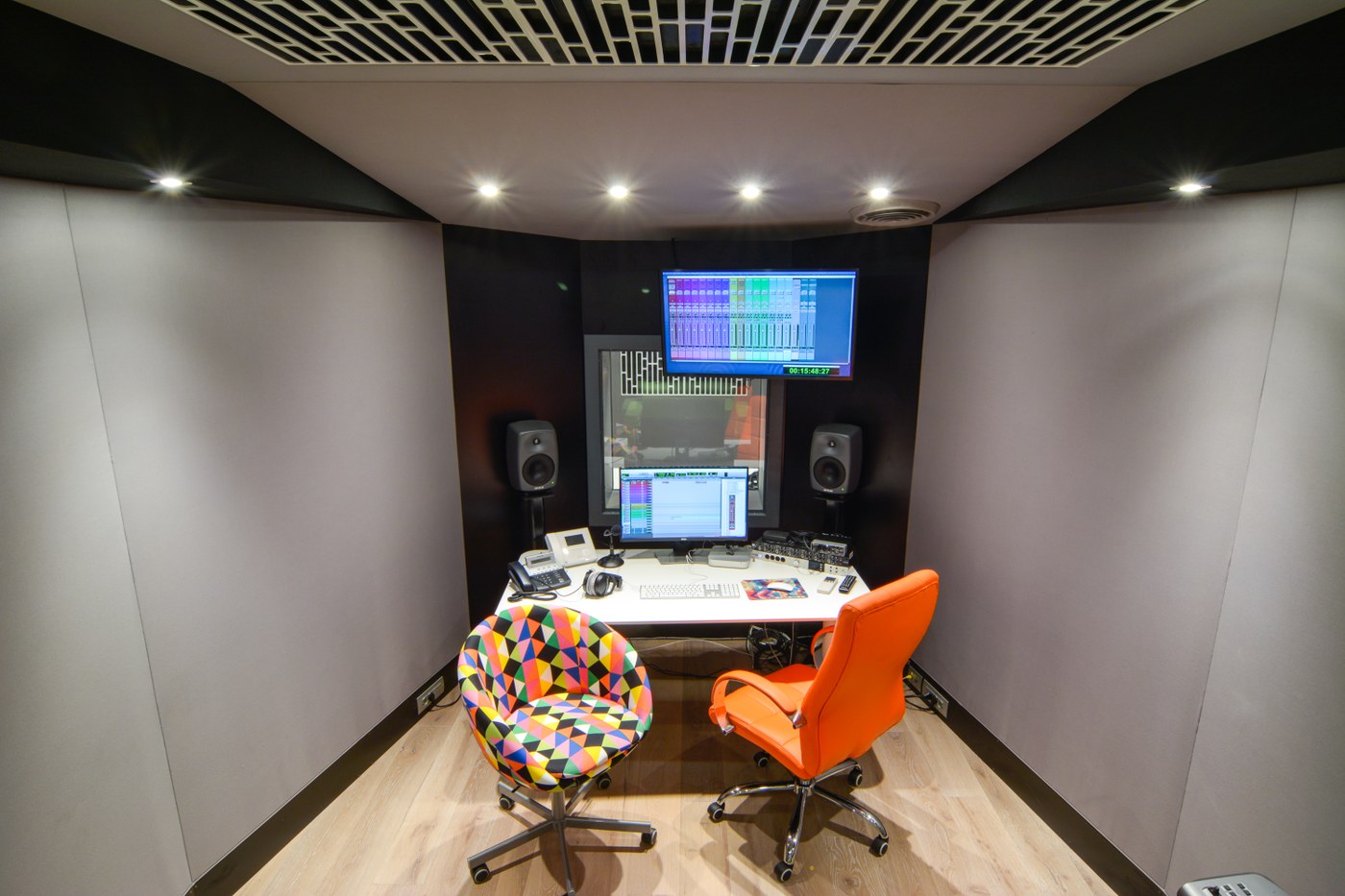 Sala asciutta concepita principalmente come vocal booth, ma con un’acustica che si presta anche alla registrazione di molti strumenti musicali.