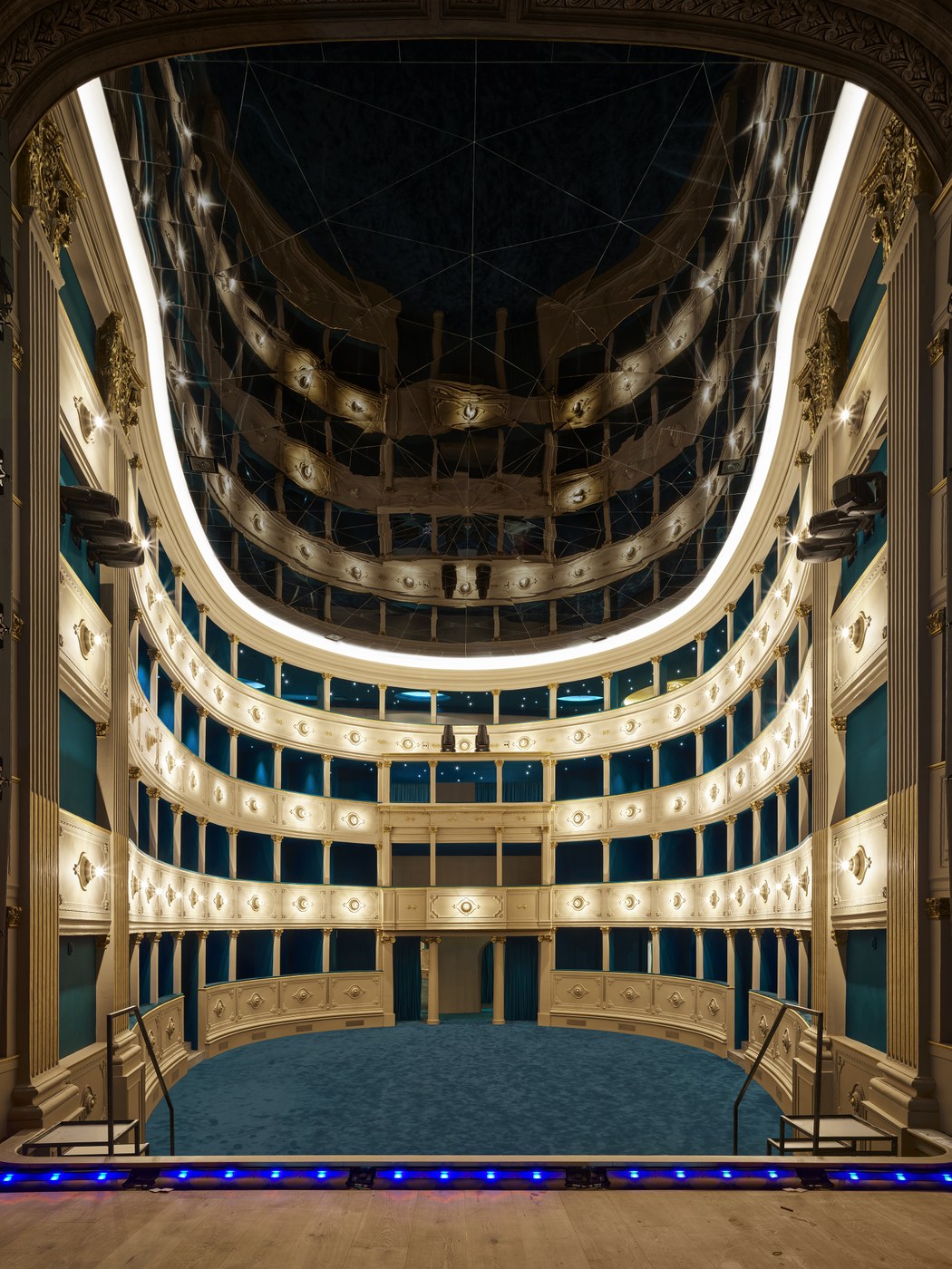 L'approccio al progetto acustico ha seguito la filosofia applicata ai teatri storici: conservare e valorizzare le caratteristiche acustiche originali, evitando stravolgimenti che ne comprometterebbero l'identità sonora. Al contempo, è stato fornito supporto ad Archea nella gestione delle innovazioni architettoniche — come il nuovo soffitto "a specchio" che ridefinisce la spazialità della sala — attraverso la selezione accurata di tessuti, imbottiture e rivestimenti. Particolare attenzione è stata dedicata alla progettazione degli isolamenti acustici verso i nuovi ambienti del complesso.